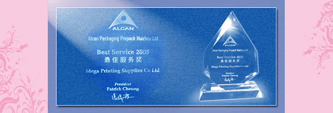 2006年6月9日,榮獲ALCAN 集團惠州寶柏公司2005年度油墨供應商 “最佳服務獎”。