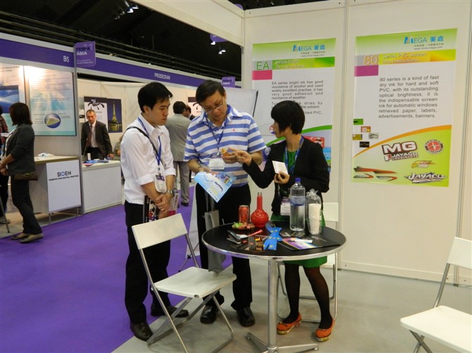2011年10月,我們參加了FESPA于新加坡舉辦的國際絲網印刷展會,展會上精美的印件,特別是新產品水性噴漆及熱轉印油墨吸引了很多買家前來咨詢產品和技術信息,為美嘉進一步走向世界奠定了良好的基礎。